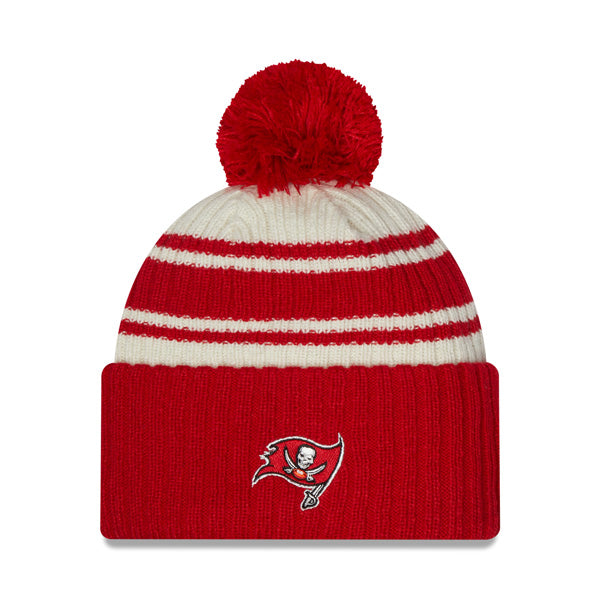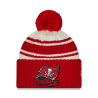 Tampa Bay Buccaneers New Era 2022 Sideline Sport Cuffed Pom Knit Hat - Cream/Red