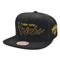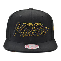 New York Knicks Mitchell & Ness BHM Script Snapback Hat - Black/Metallic Gold