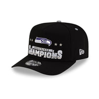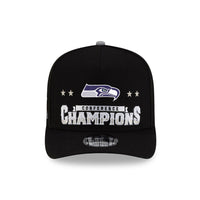 Seattle Seahawks New Era 2025 NFC Champions Locker Room Trophy Collection A-Frame 9FIFTY Snapback Hat - Black