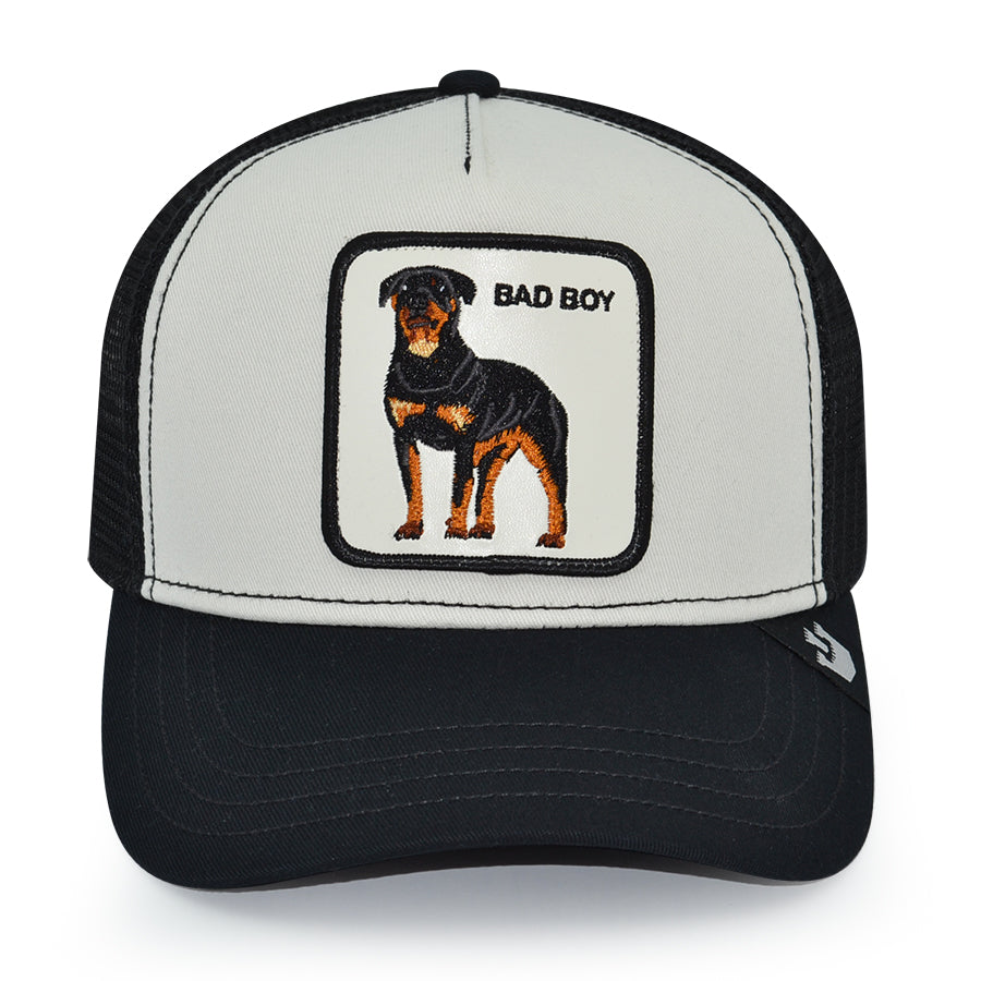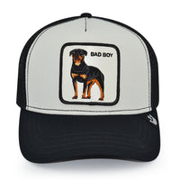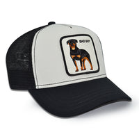 THE BADDEST BOY ROTTWEILER Goorin Bros Mesh Trucker Snapback Hat - Chrome/Black