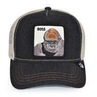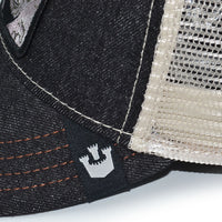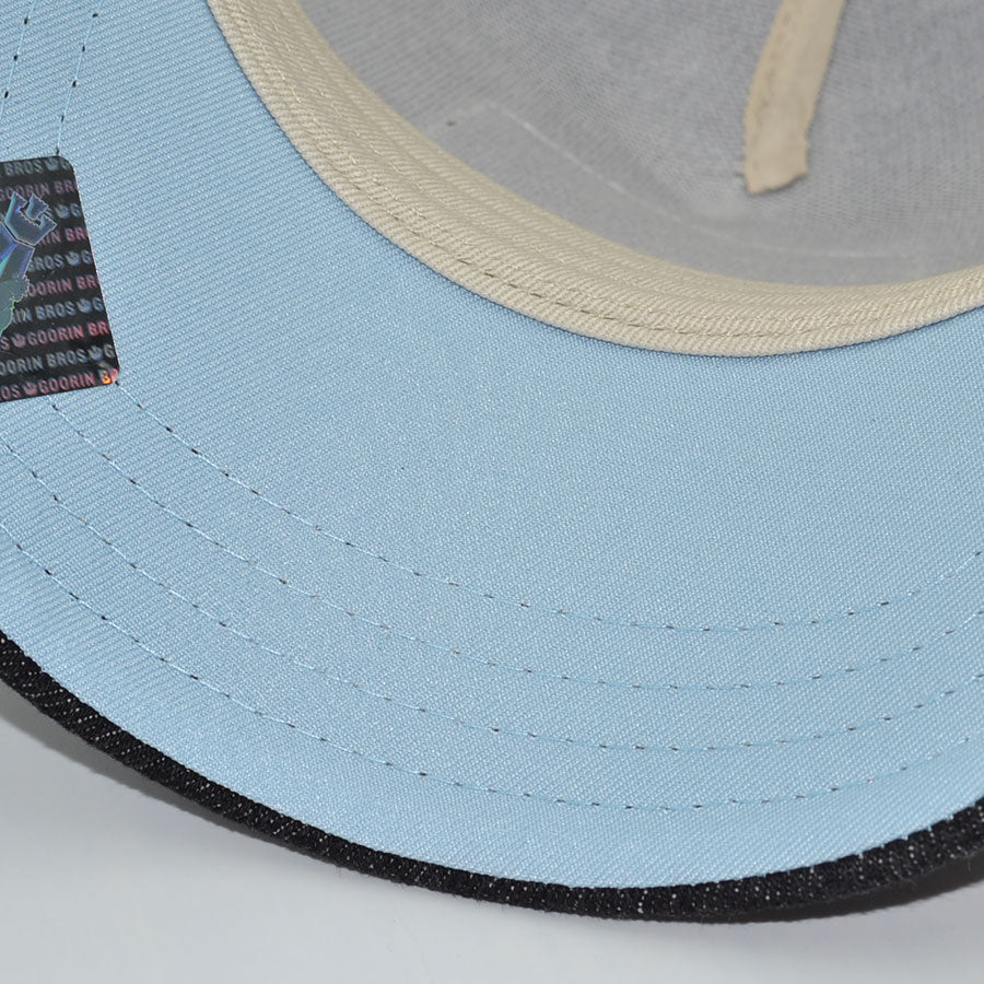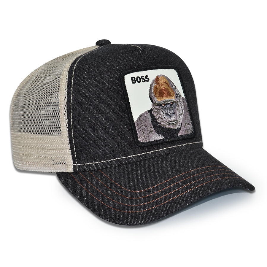 THE BOSS APE Goorin Bros Mesh Trucker Snapback Hat -Black Denim/Beige/Sky UV