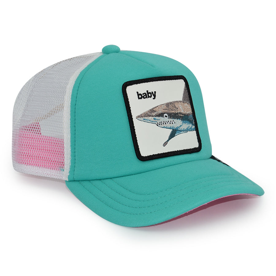 THE "DO DO DOO DOO" BABY SHARK Goorin Bros Mesh Trucker Youth Snapback Hat - Teal/White/Pink