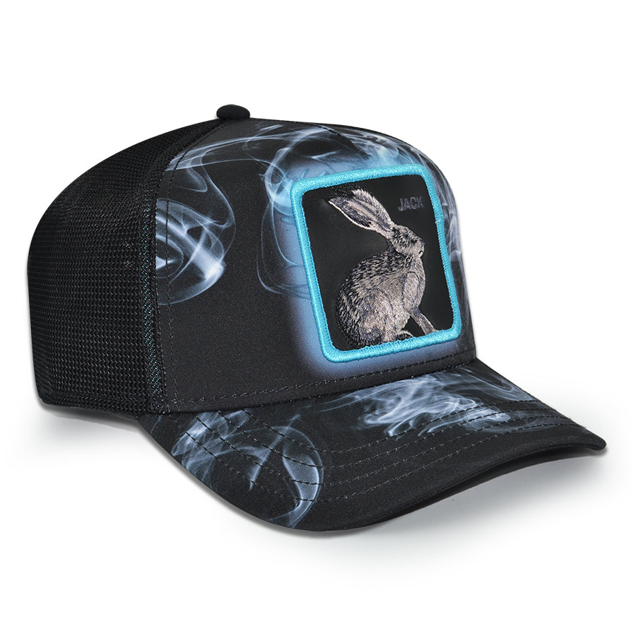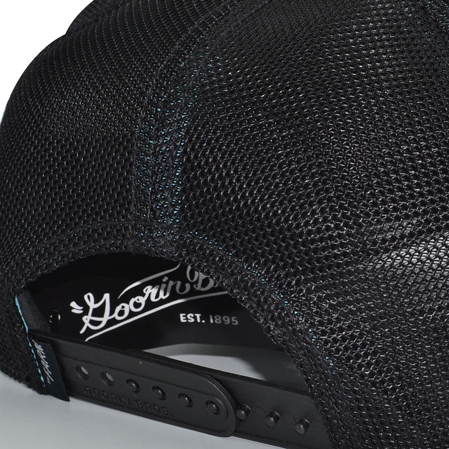 THE NEW JACK CITY RABBIT Goorin Bros Mesh Trucker Snapback Hat -Black Smoke /Teal
