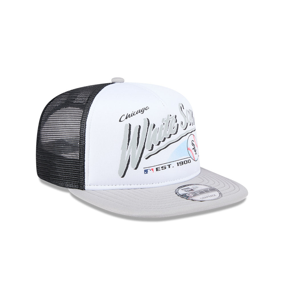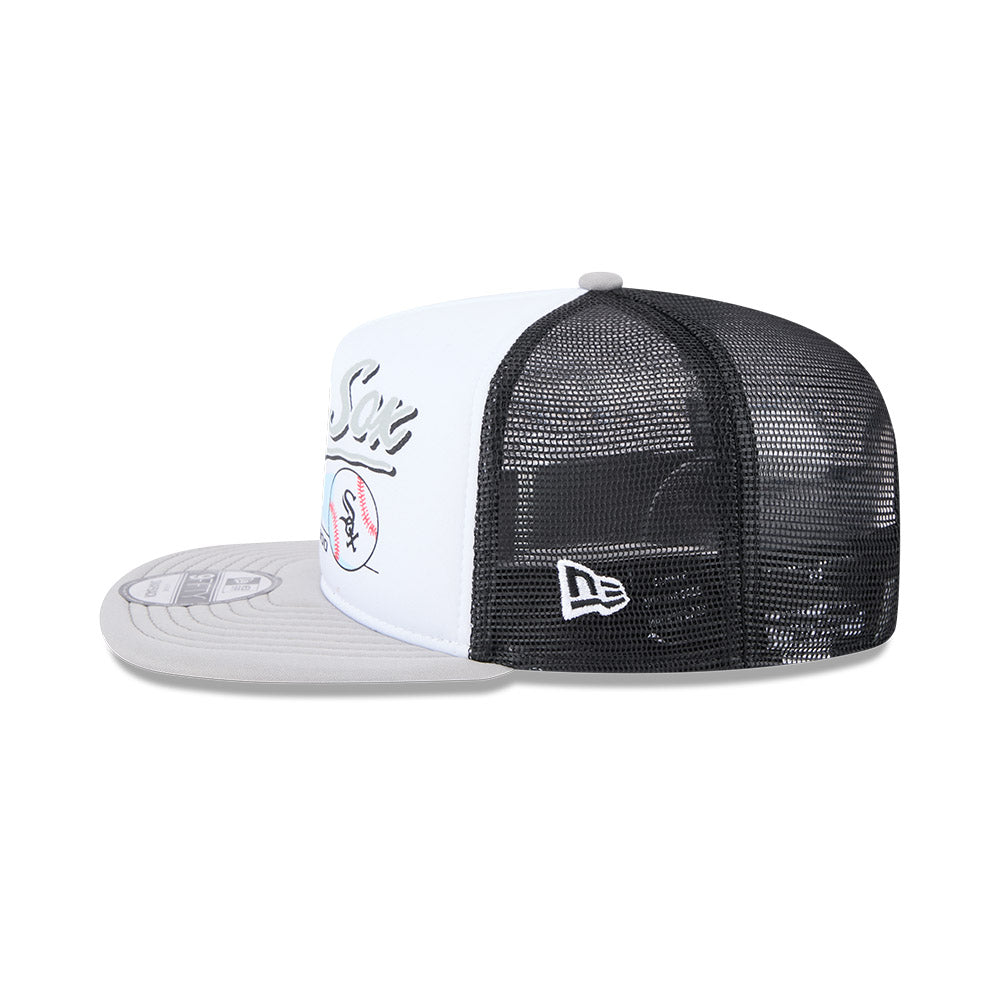 Chicago White Sox New Era RETRO SCRIPT 9Fifty A-Frame Mesh Trucker Snapback Hat - Black/Gray