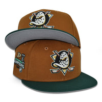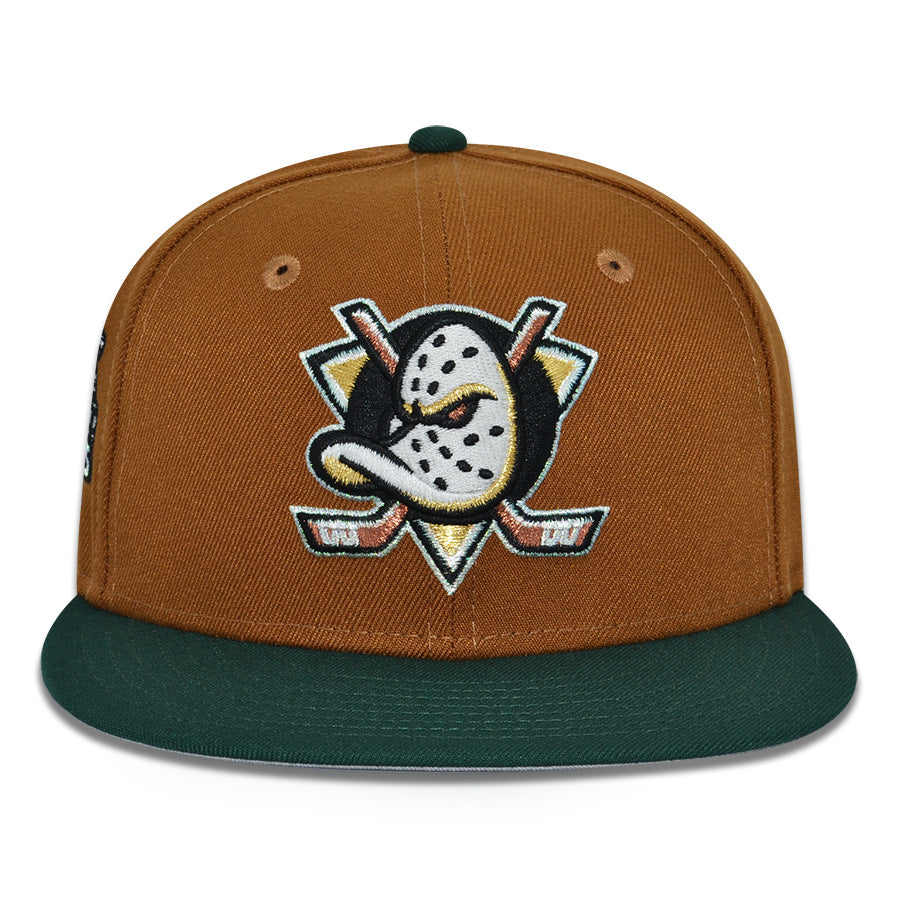 Anaheim Ducks "MALLARD MENACE" Exclusive New Era 59Fifty Fitted Hat - Toasted Peanut/Dark Green