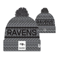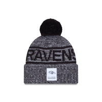 Baltimore Ravens New Era 2025 NFL Sideline Sport Cuffed Pom Knit Hat - Graphite/Black