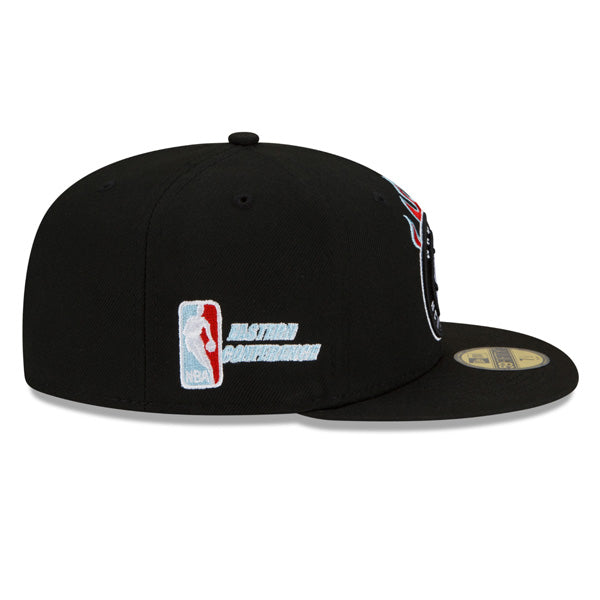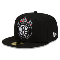 Brooklyn Nets NBA EASTERN CONFERENCE Exclusive New Era ON-FIRE 59Fifty Fitted Hat - Black/Sky Bottom