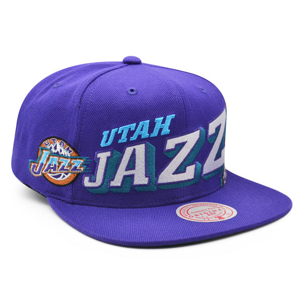Utah Jazz Mitchell & Ness THE GRID Snapback NBA Hat - Purple/Vice Blue