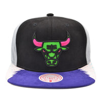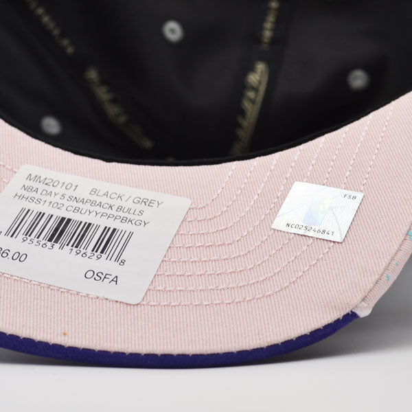 Chicago Bulls Exclusive Mitchell & Ness AIR JORDAN DAY 5 Snapback Hat - Black/Lime/Purple/Pink