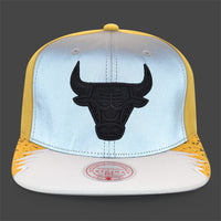 Chicago Bulls Exclusive Mitchell & Ness AIR JORDAN DAY 5 Snapback Hat - Reflective Gray/Black/Yellow