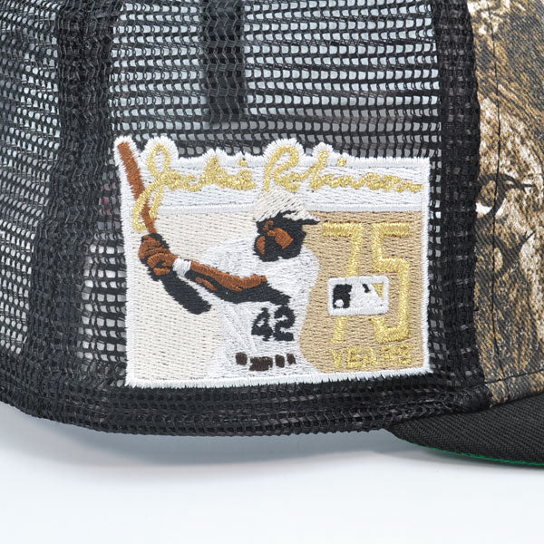 Brooklyn Dodgers Jackie Robinson 75 Great Years Trucker Exclusive New Era 59Fifty Fitted Hat - Real Tree Camo/Mesh