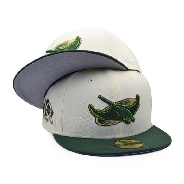 Tampa Bay Devil Rays 10 SEASONS Exclusive New Era 59Fifty Fitted Hat - Chrome/Pine/Gold Metallic