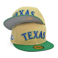 Texas Rangers 50th ANNIVERSARY Exclusive New Era 59Fifty Fitted Hat - Vegas Gold/Bot Green