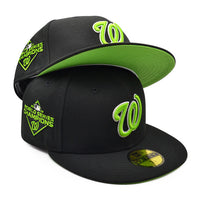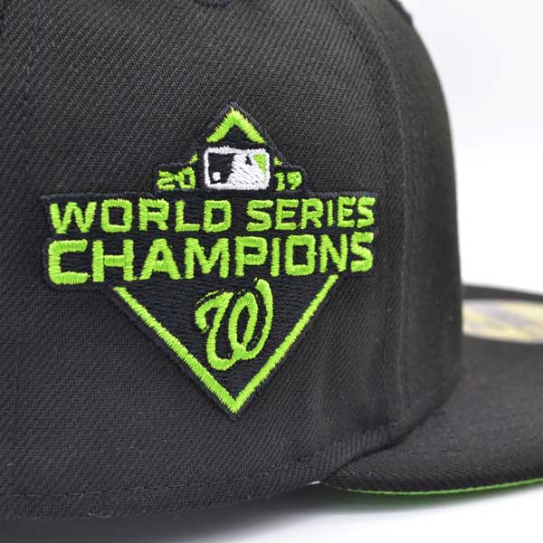 Washington Nationals 2019 WORLD SERIES CHAMPIONS Exclusive New Era 59Fifty Fitted Hat - Black/Lime Bottom