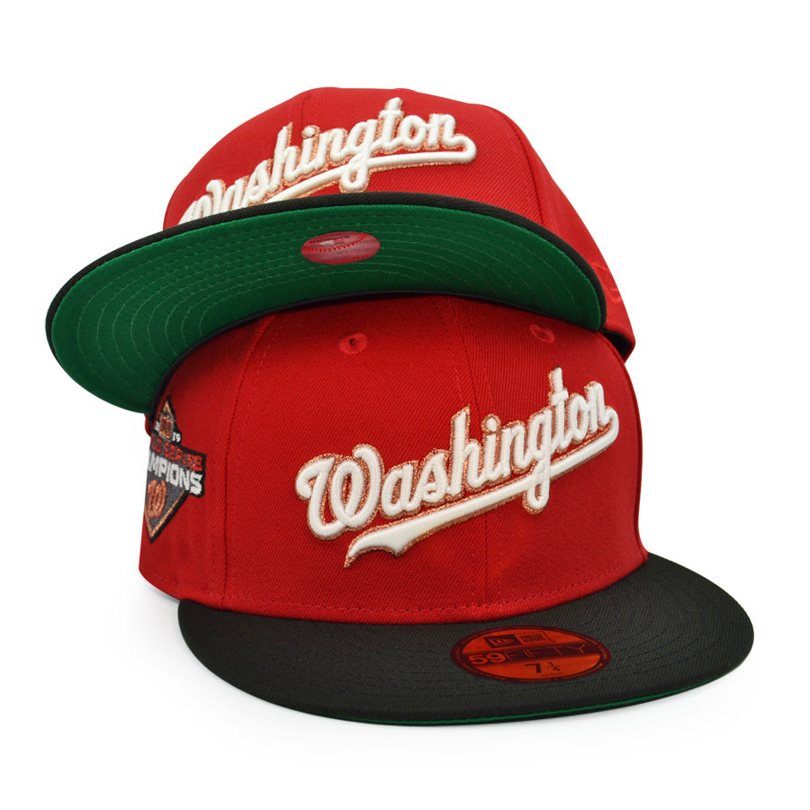 Washington Nationals Script 2019 WORLD SERIES CHAMPIONS Exclusive New Era 59Fifty Fitted Hat - Scarlet/Black