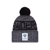 Las Vegas Raiders New Era 2025 NFL Sideline Sport Cuffed Pom Knit Hat - Graphite/Black