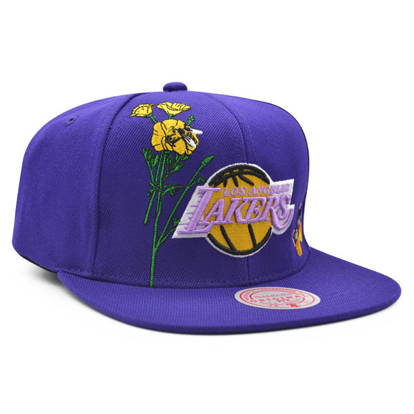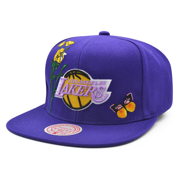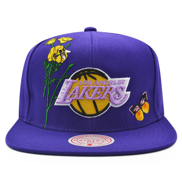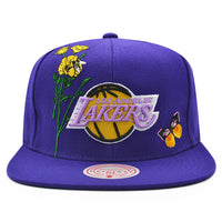 Los Angeles Lakers Mitchell & Ness FLOWER TIME Snapback NBA Hat - Purple/Yellow