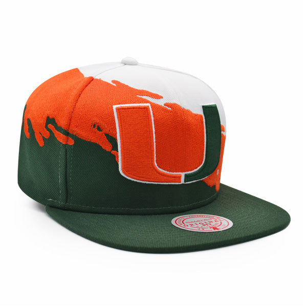 Miami Hurricanes NCAA Mitchell & Ness PAINTBRUSH Snapback Hat - Green/Orange