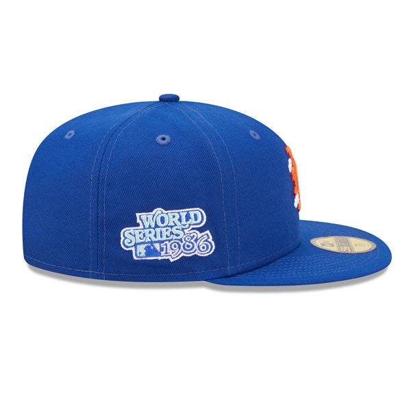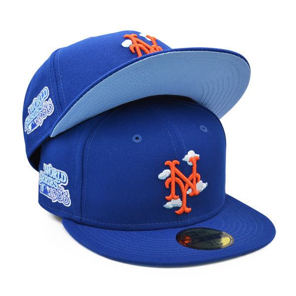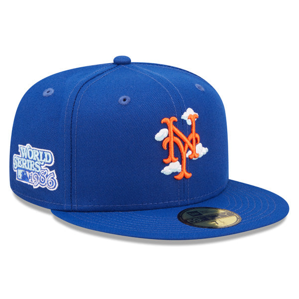 New York Mets 1986 World Series New Era Exclusive COMIC CLOUD 59Fifty Fitted Hat - Royal/Sky Bottom