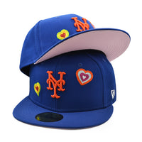 New York Mets CHAINED HEARTS Exclusive New Era Fitted 59Fifty MLB Hat -Royal/Pink