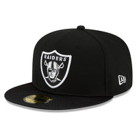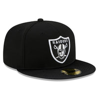 Oakland Raiders New Era 2021 NFL Official Sideline ROAD 59FIFTY Fitted Hat - Black/Silver