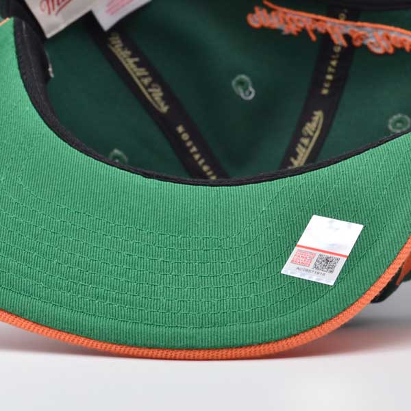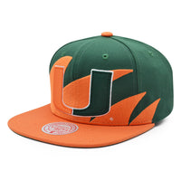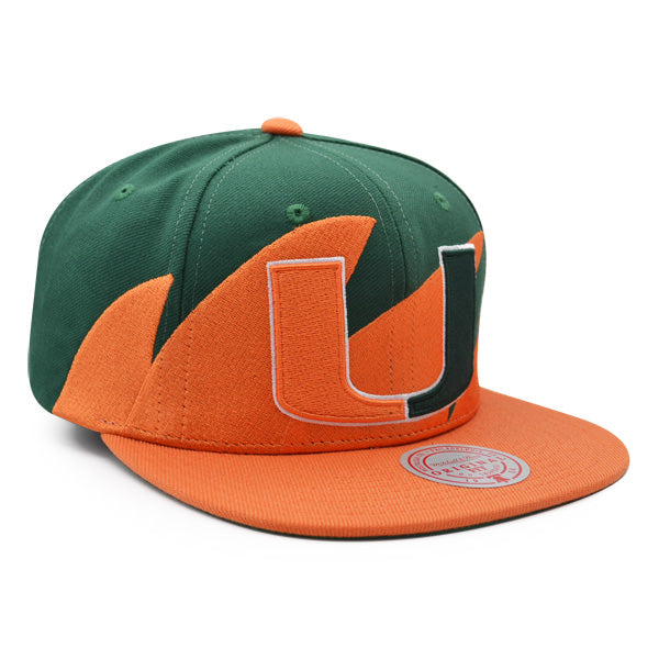 Miami Hurricanes NCAA Mitchell & Ness SHARKTOOTH Snapback Hat - Orange/Green