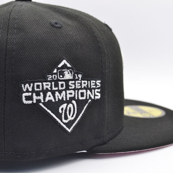Washington Nationals 2019 WORLD SERIES Exclusive New Era 59Fifty Fitted Hat – Black/White Glow/Pink Bottom