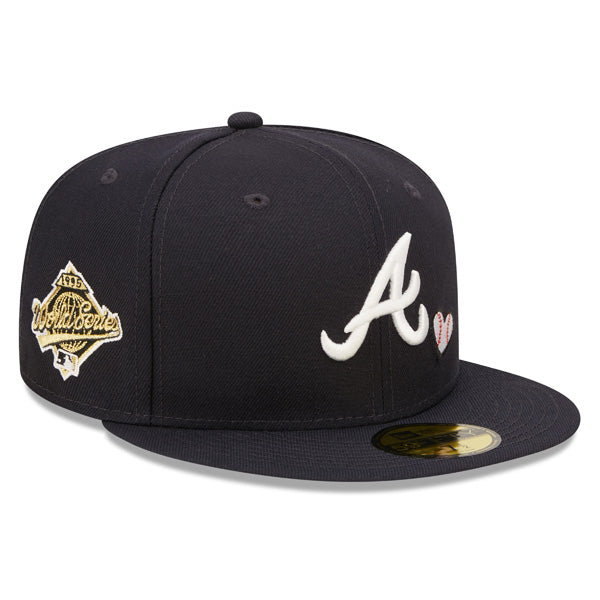 Atlanta Braves 1995 WORLD SERIES Exclusive TEAM HEARTS New Era Fitted 59Fifty MLB Hat -Navy